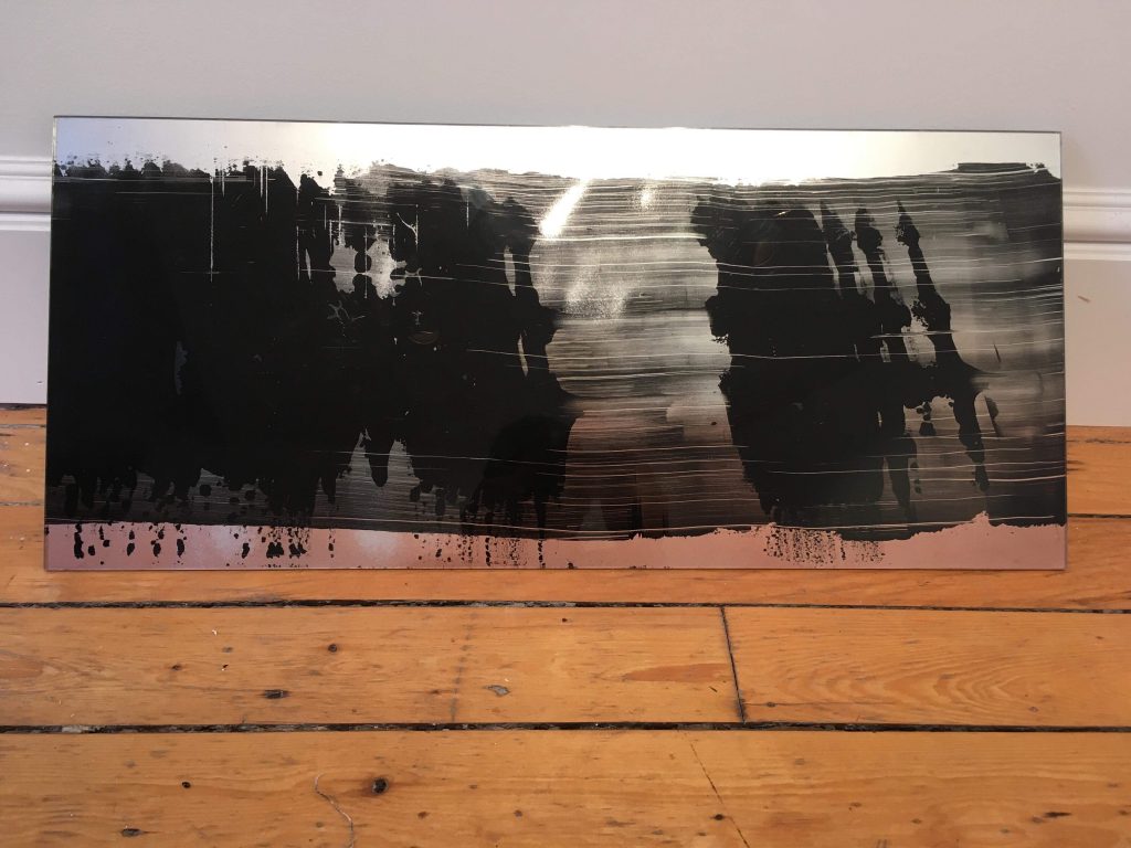 “Twilight Reflection:” an oil and enamel painting on reclaimed lucite donated by favorite local artist, Zack Lobdell