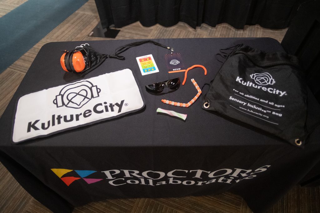 During the last few months, Proctors took the initiative to become a sensory-friendly-certified building with KultureCity®. Staff and volunteers underwent specialized training to recognize and assist individuals with sensory processing disorders. Proctors ordered sensory bags, available at the new Accessibility Desk for every show, that include noise-canceling headphones, fidget tools, and verbal cue cards, and also designated quiet areas within the venue for anyone needing a break.