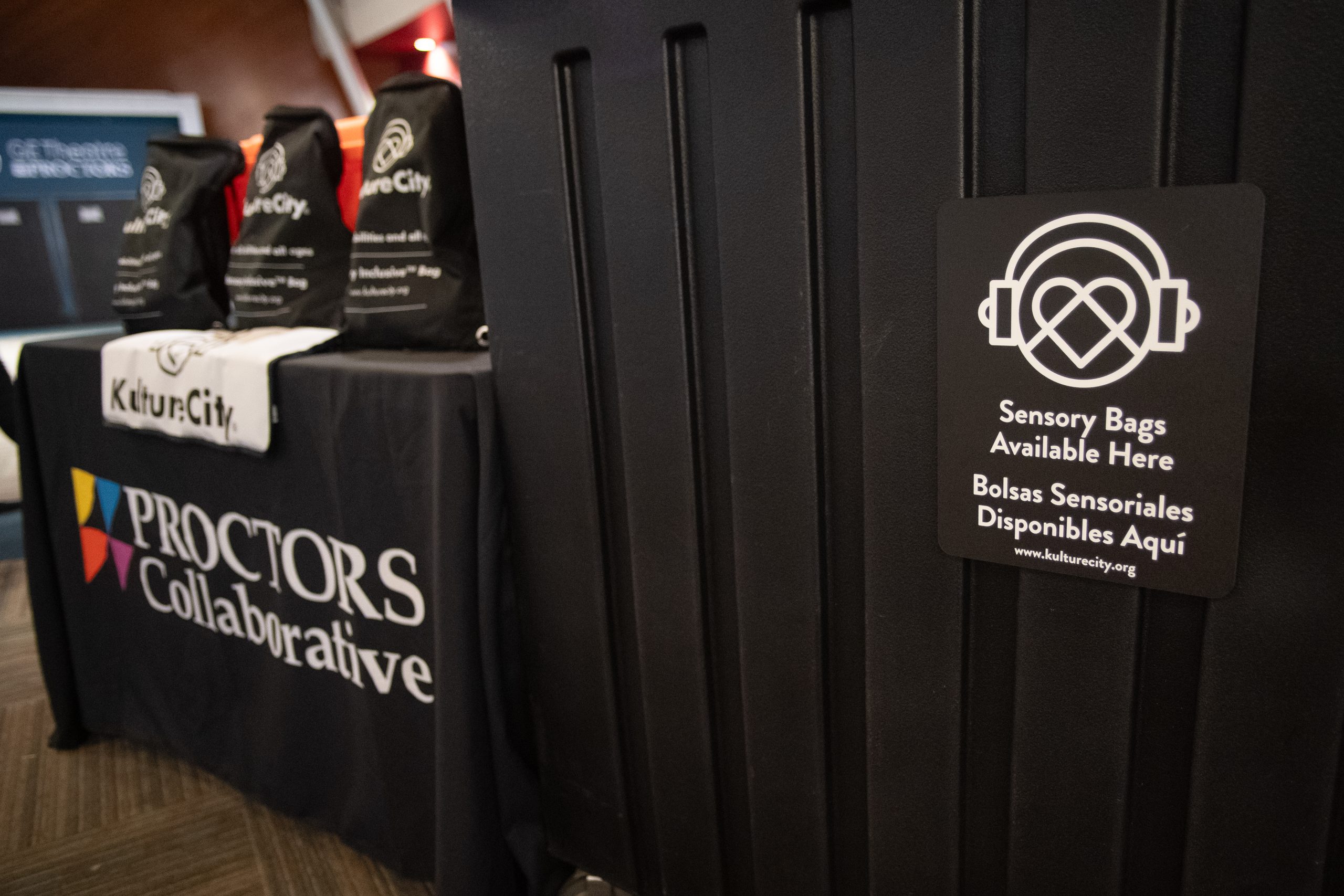 During the last few months, Proctors took the initiative to become a sensory-friendly-certified building with KultureCity®. Staff and volunteers underwent specialized training to recognize and assist individuals with sensory processing disorders. Proctors ordered sensory bags, available at the new Accessibility Desk for every show, that include noise-canceling headphones, fidget tools, and verbal cue cards, and also designated quiet areas within the venue for anyone needing a break.