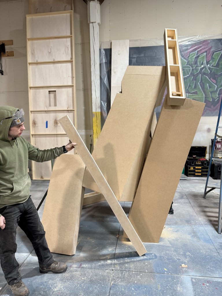 Lead Carpenter Bryan Drossel said, “This project allowed us to showcase our versatility in delivering a quality product under very specific needs and timeframes. Taking an artistic concept of a sculpture and making what others may deem impossible a physical reality, while also being able to build to precise on-site measurements demonstrates that we are able to serve clients outside of live theatre.”